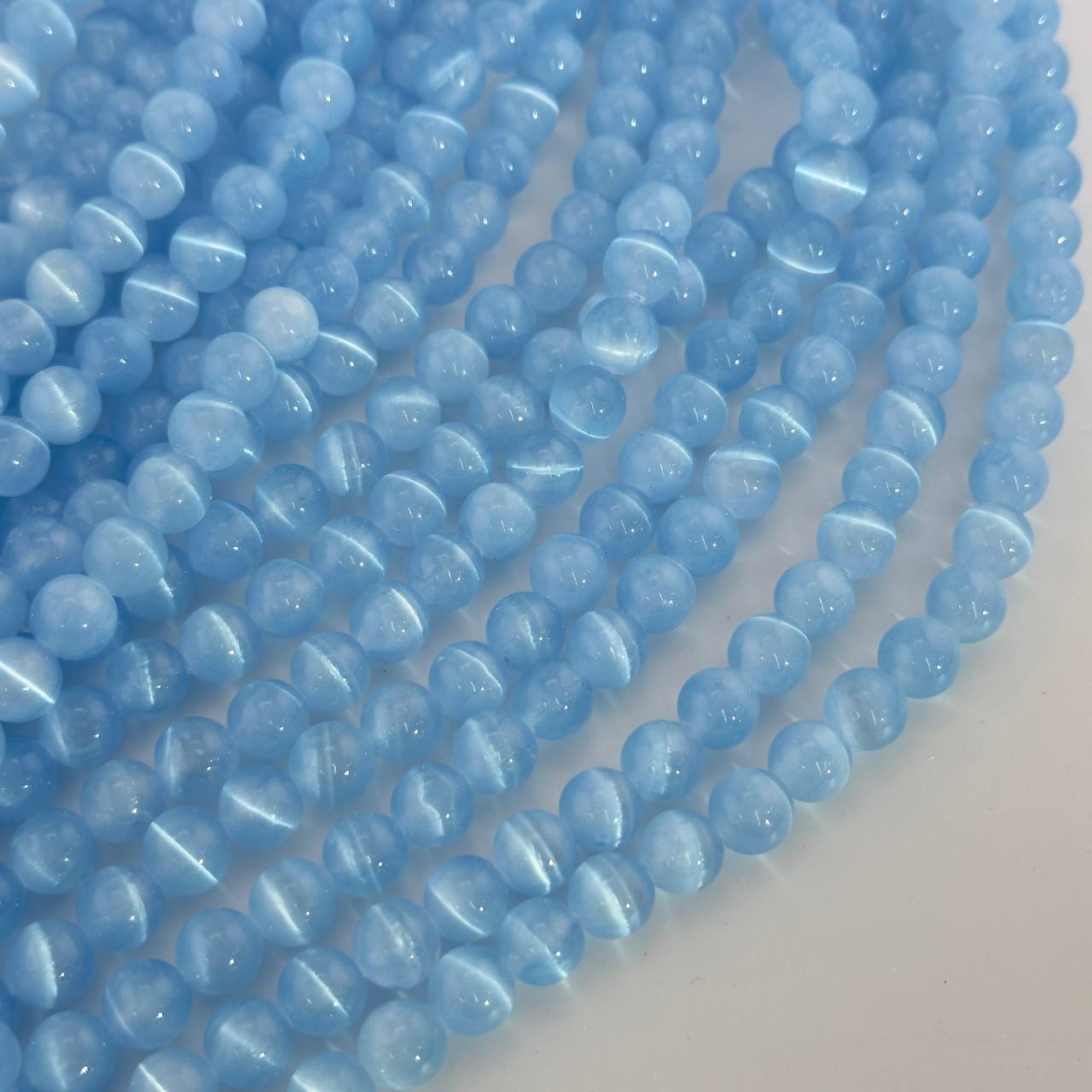 Бусины Селенит цвет голубой размер 6мм 8мм 10мм натуральный камень